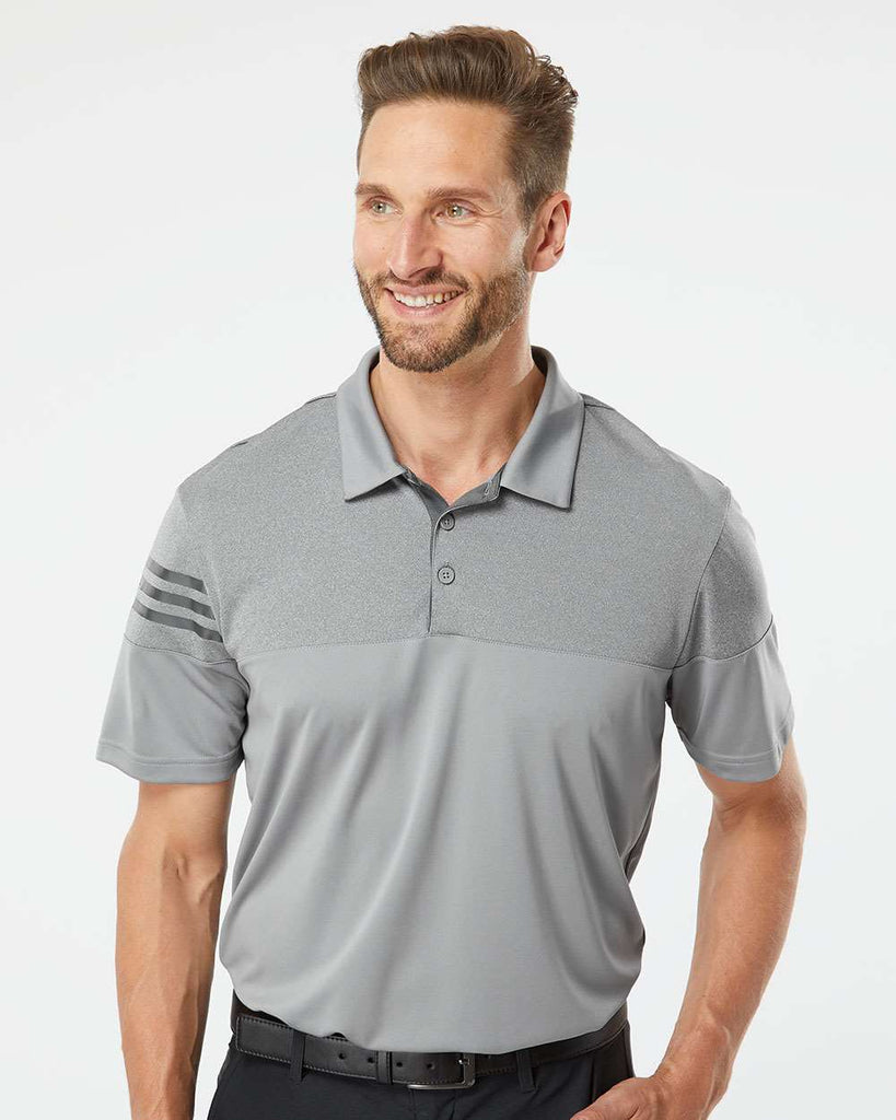Adidas - Heathered 3-Stripes Colorblock Sport Shirt